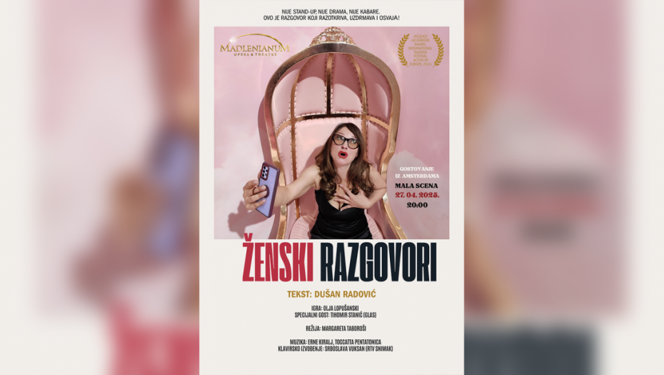 Madlenianum vas poziva na veče smeha, promišljanja i dobre zabave – u nedelju, 27. aprila od 20 časova, na Maloj sceni, gledamo Ženske razgovore! Ovu jedinstvenu monodramu iz Amsterdama donosi sjajna Olja Lopušanski, a ako mislite da znate sve o muško-ženskim odnosima... razmislite još jednom.