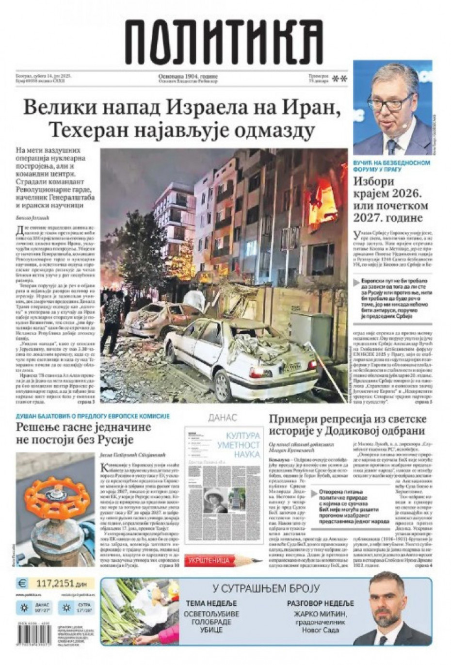 Naslovne strane dnevne štampe za subotu, 14. jun