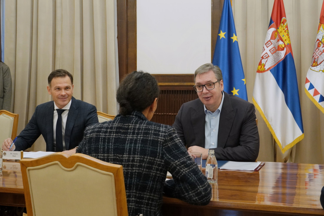 Predsednik Republike Srbije Aleksandar Vučić sastao se sa predstavnicima Misije Međunarodnog monetarnog fonda u Srbiji na čelu sa šefom Misije Anet Kjobe, sa kojima je razgovarao o aktuelnim ekonomskim kretanjima, fiskalnoj politici i reformskim prioritetima Republike Srbije.