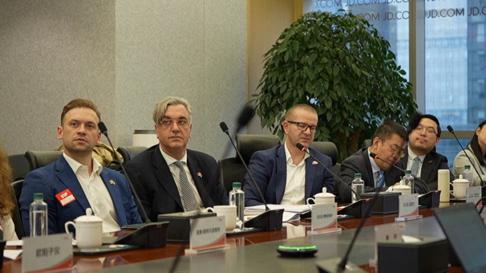 Sa potpredsednikom kompanije JD.com Žang Sing (Zhang Xing), potpredsednikom za odnose s javnošću Cao Đijang (Cao Jiang) i rukovodiocem razvoja poslovanja JD platforme za prekograničnu e-trgovinu Hejdi Juan (Heidi Yuan), razgovarano je o mogućnostima strateškog partnerstva u razvoju regionalnog e-commerce centra i pametne logistike, koji bi povezao kineske kompanije sa tržištem Evropske unije.