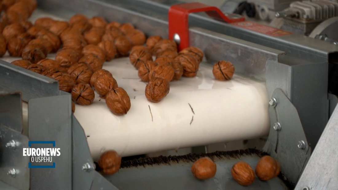 "Imamo posebnu krckalicu, koja krcka nekih 80 kg na sat što znači da mi za jedan dan možemo da okrckamo nekih 800 kg oraha. Orah prođe kroz krckalicu i direktno iz krckalice ulazi u prostoriju, tu se vrši selekcija oraha našeg finalnog proizvoda. Ako se zadesi da se na inspekcionom stolu nađe neka nezdrava jezgra ali se odvajaju sva jezgra koje ne zadovoljavaju taj stepen svetloće pošto ovo su posebne sorte i sve što je tamnije se odvaja i posebno pakuje ili se samo eliminiše gde na kraju dobijamo lepu, zdravu, belu jezgru. Na inspekcionom stolu može da se zadesi ljuska, ne može mašina da uradi 100 odsto pogotovo što mi želimo da dobijemo visok procenat prve klase u tom slučaju mora da se nađe i pokoja ljuska zato ti ljudi stoje za inspekcionim stolom i prebiraju", dodaje.
