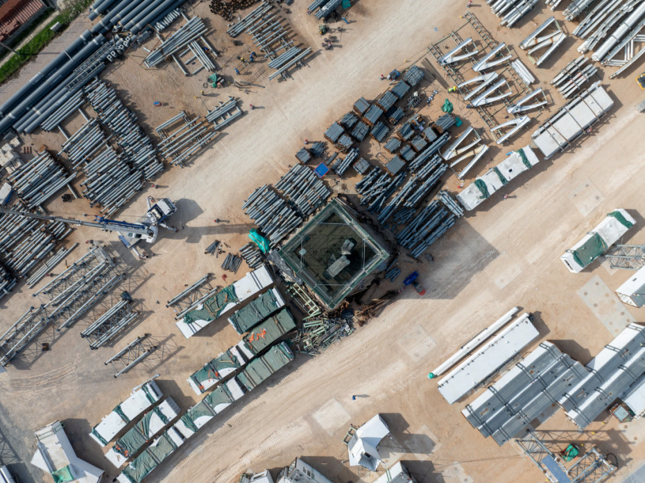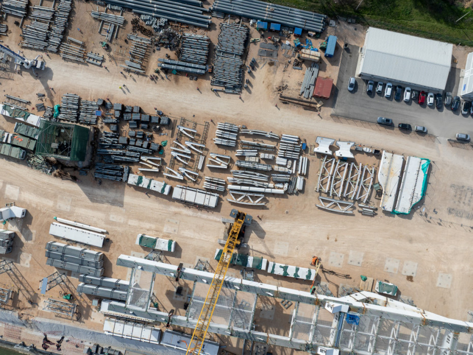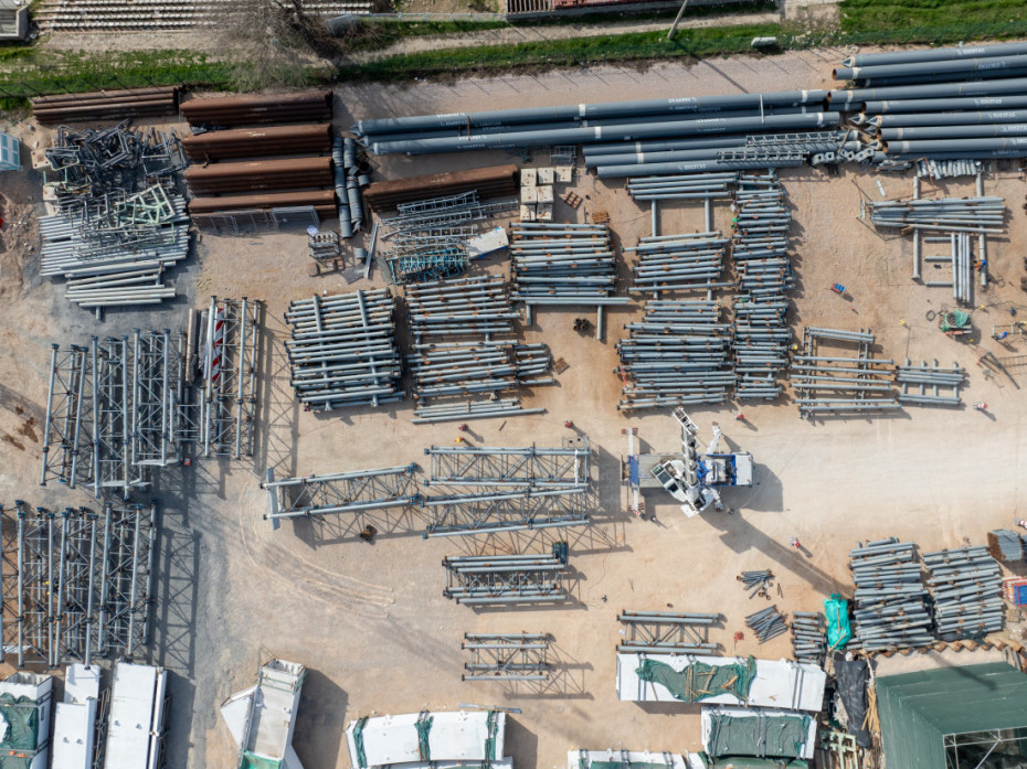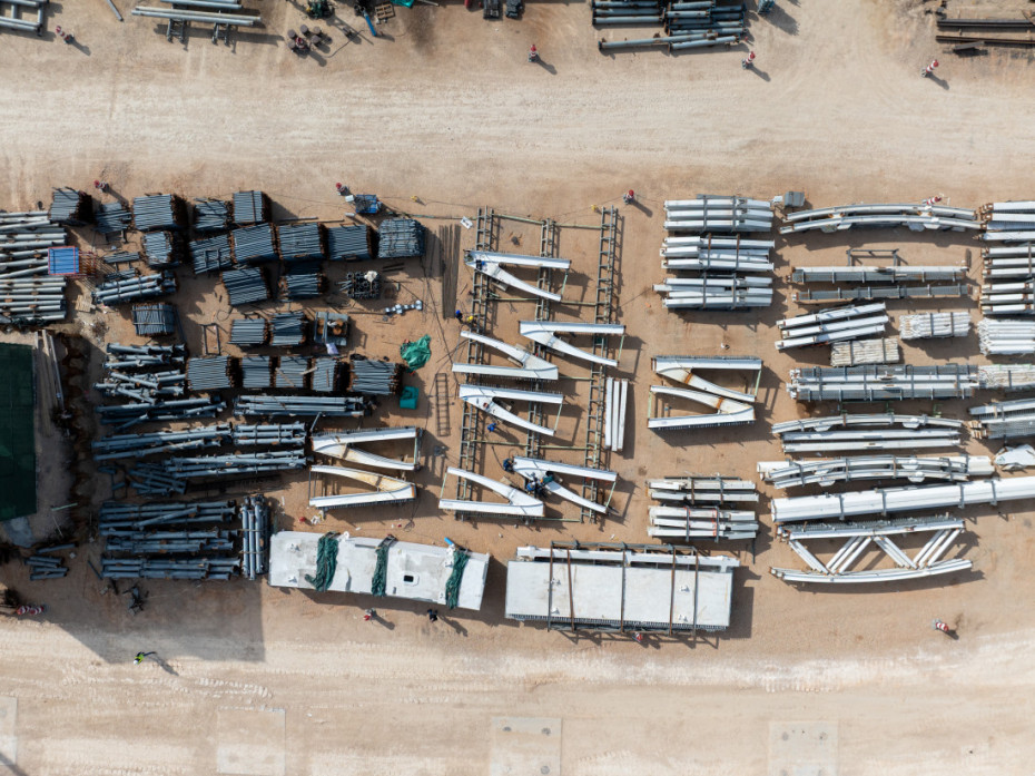 Gradilište radi sedam dana u nedelji u jednoj smeni, a angažovano je između 200 i 250 radnika, 10 dizalica i više od 50 različitih mašina.