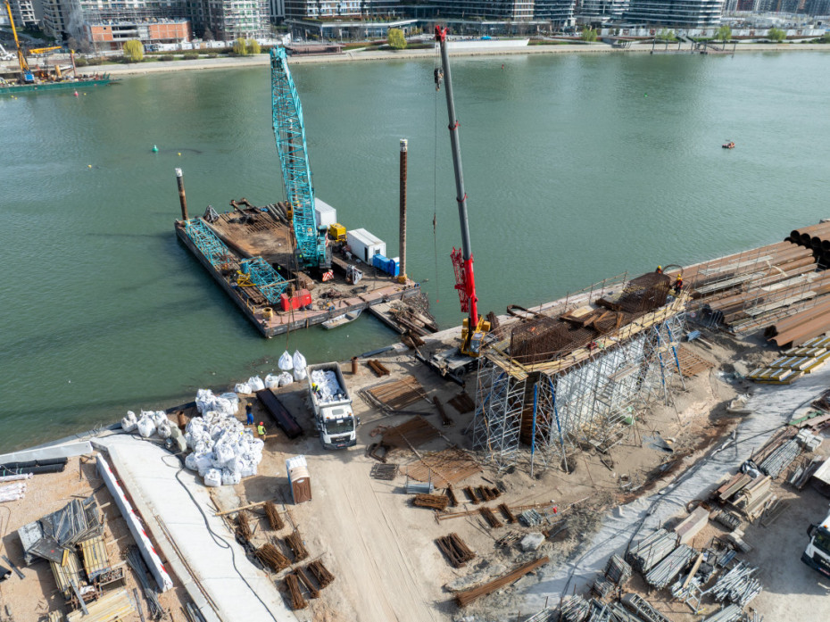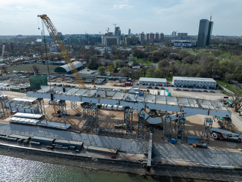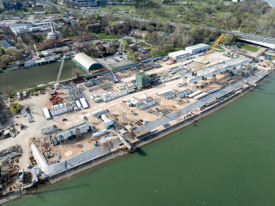 Nikolić je rekao da na novobeogradskoj strani obale građani mogu da vide jedno gradilište koje je pripremljeno za skladištenje elemenata gornjeg stroja mosta i mogu da vide deo konstrukcije budućeg glavnog raspona mosta-lukova.