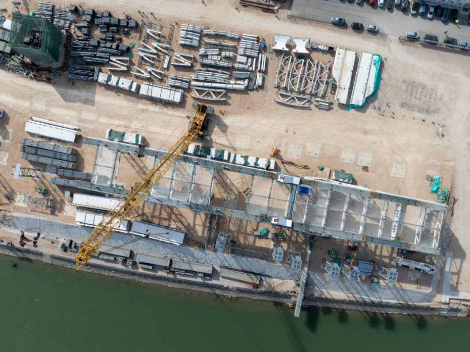 Ekipa Tanjuga posetila je gradilište na levoj obali reke Save, gde je montirano trenutno 16 metara donjeg stroja budućeg Savskog mosta.