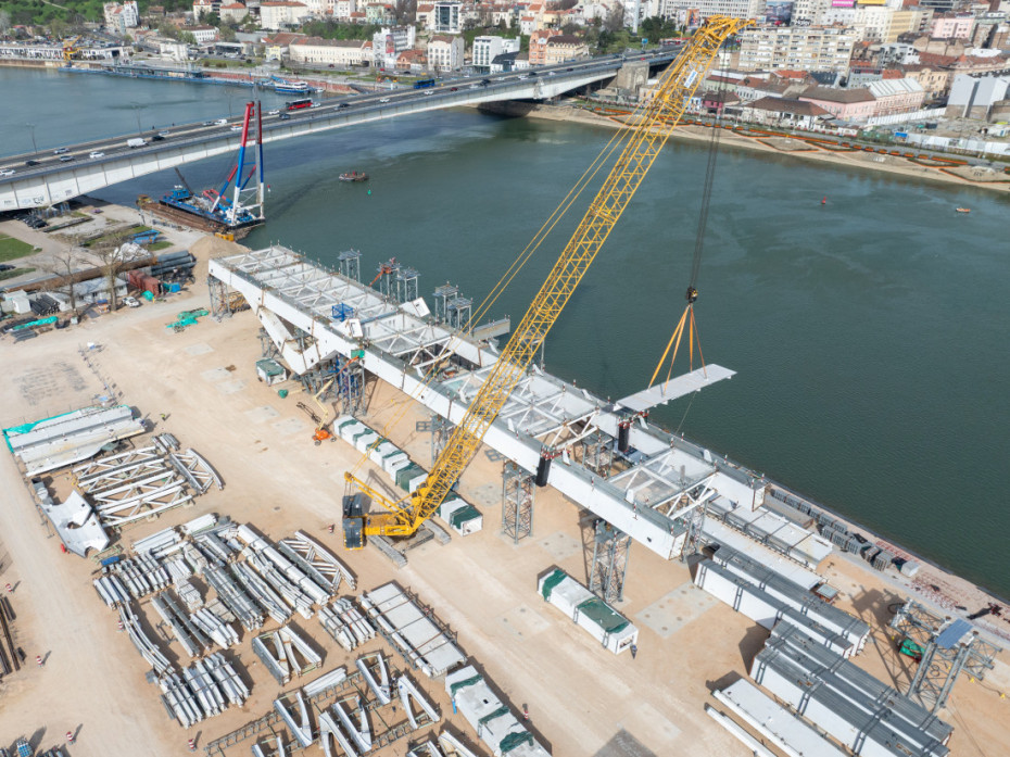 Dodao je da je težina novog Savskog mosta oko 6.500 tona, a dela koji se montira na gradilištu 4.700 tona.