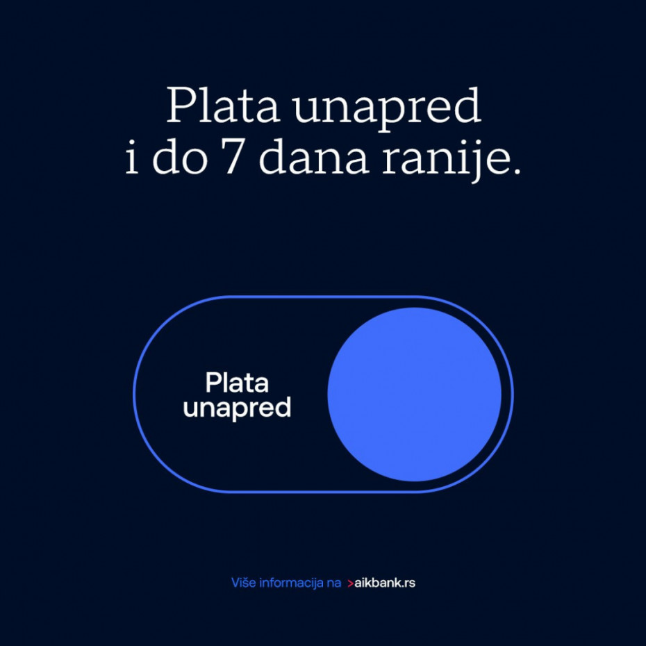 AikBank svojim klijentima omogućava i dodatne pogodnosti uz Aik Advance i Aik Supreme pakete, a to su Non stop štednja, štednja po viđenju uz 5% EKS na dinare, i Plata unapred, jedinstvena usluga koju trenutno u Srbiji omogućava samo AikBank i uz koju klijenti mogu primiti platu i do sedam dana pre zvanične uplate. Saznajte više i otvorite račun 100% online na www.aikbank.rs.