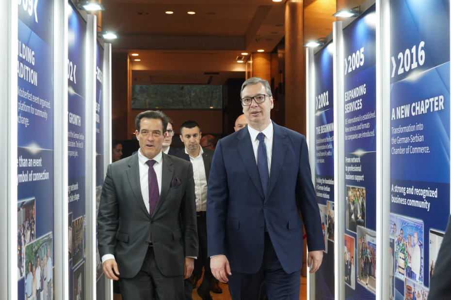 Predsednik Srbije Aleksandar Vučić prisustvovao je svečanosti "25 godina partnerstva uz fokus na inovacije i tehnologiju", koju je povodom jubileja privredne saradnje dve zemlje organizovala Nemačko-srpska privredna komora (AHK).