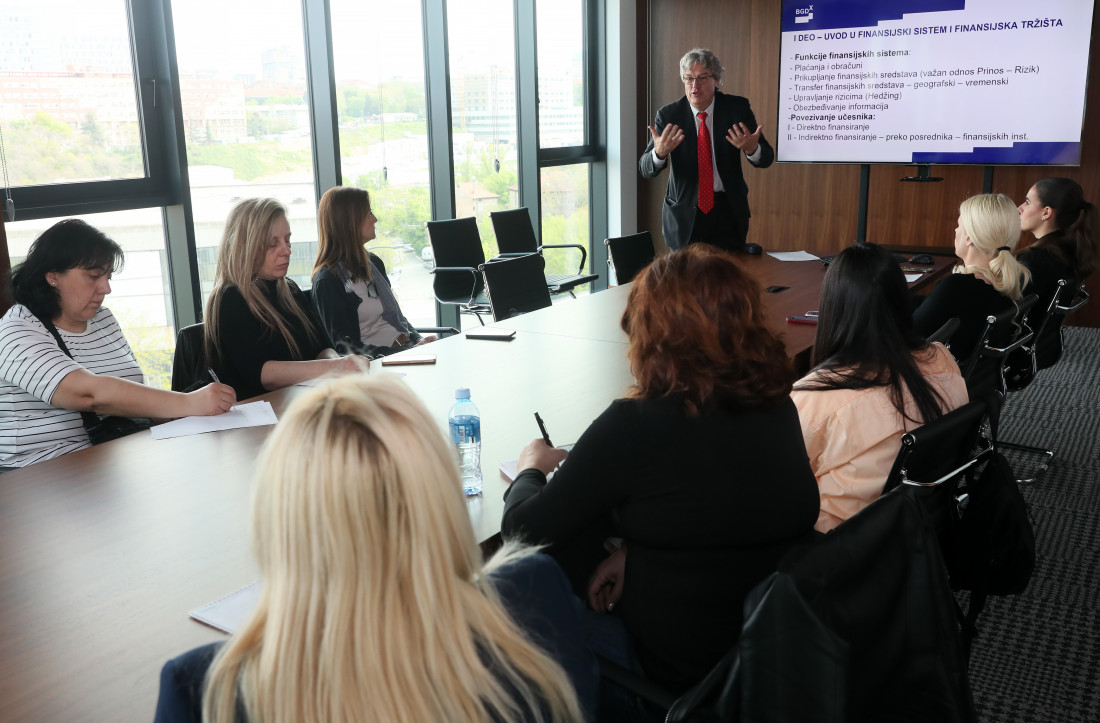 Prvi deo edukacije obuhvatio je uvod u finansijski sistem i tržišta, gde su polaznici učili o značaju i funkcijama savremenih finansijskih institucija i instrumenata, podeli tržišta na tržište novca, kapitala i derivata, kao i o osnovnim pojmovima poput kamatnih stopa i deviznih kurseva.