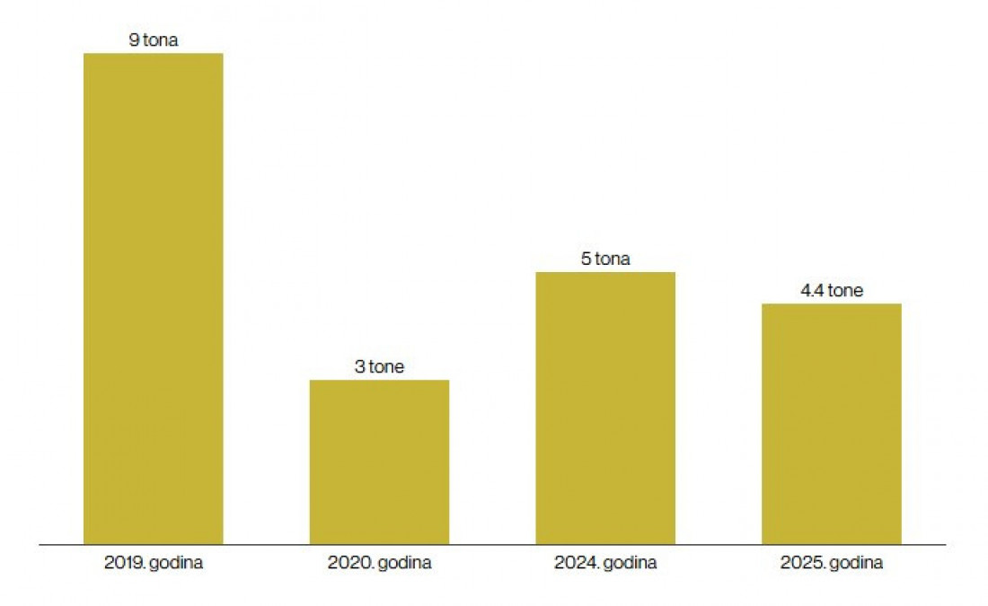 Iako je cena zlata u 2025. porasla za više od 65 odsto, što je najbolji godišnji rezultat još od 1979. godine, Narodna banka Srbije (NBS) nastavila je da skladišti svoje rezerve ovog plemenitog metala. Visoka cena nije sprečila NBS da prošle godine kupi 4,4 tone zlata, nakon čega su na kraju 2025. zlatne rezerve činile 21,4 odsto bruto deviznih rezervi Srbije i dostigle rekordnih 52,5 tona vrednih oko 6,2 milijarde evra.