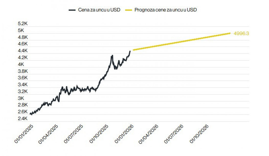 "S obzirom na to da će Fed verovatno još jednom oboriti kamatu do kraja 2026, da su indeksi na rekordima i da postoji strah od korekcije i da na to možemo dodati niz nerešenih geopolitičkih tema, počev od Ukrajine pa sada do Grenlanda, najverovatnije da zlato i dalje ostaje validna alternativa bez obzira na veliki skok u 2025. godini", naveo je on.
