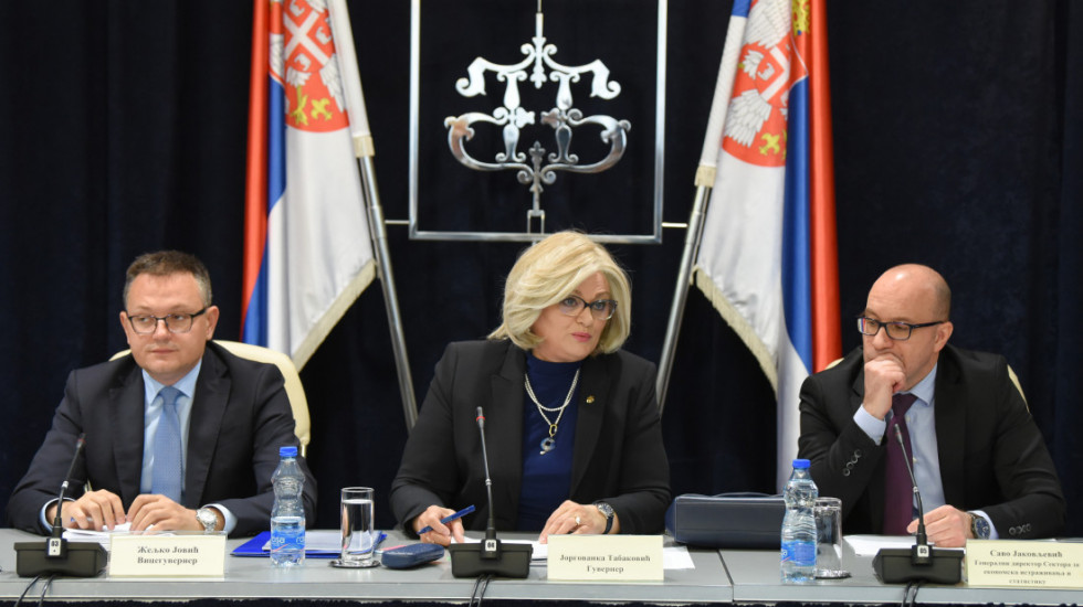 "Čuvanjem stabilnosti kursa dinara uspeli smo da sprečimo da se prelivanje rasta uvoznih cena energenata i hrane na ostale cene dodatno pojača efektima deprecijacije dinara", istakla je guvernerka Tabaković.