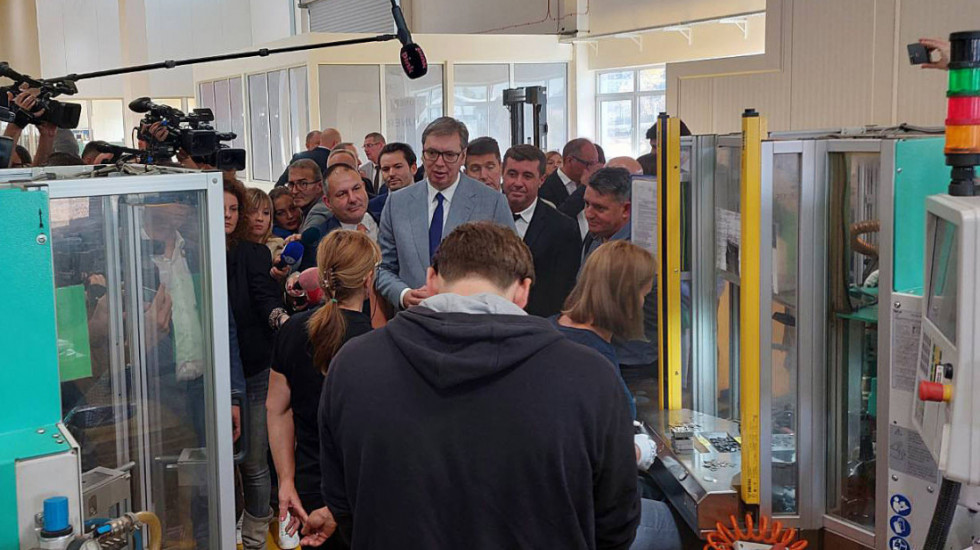 "Imamo veliku razmenu zahvaljujući Gruneru u brojnim drugim nemačkim kompanijama. To je za nas velika i važna stvar, ovo čini napredak Srbije, tek kada ljudi imaju posao mogu da ostanu u Vlasotincu", istakao je Vučić.