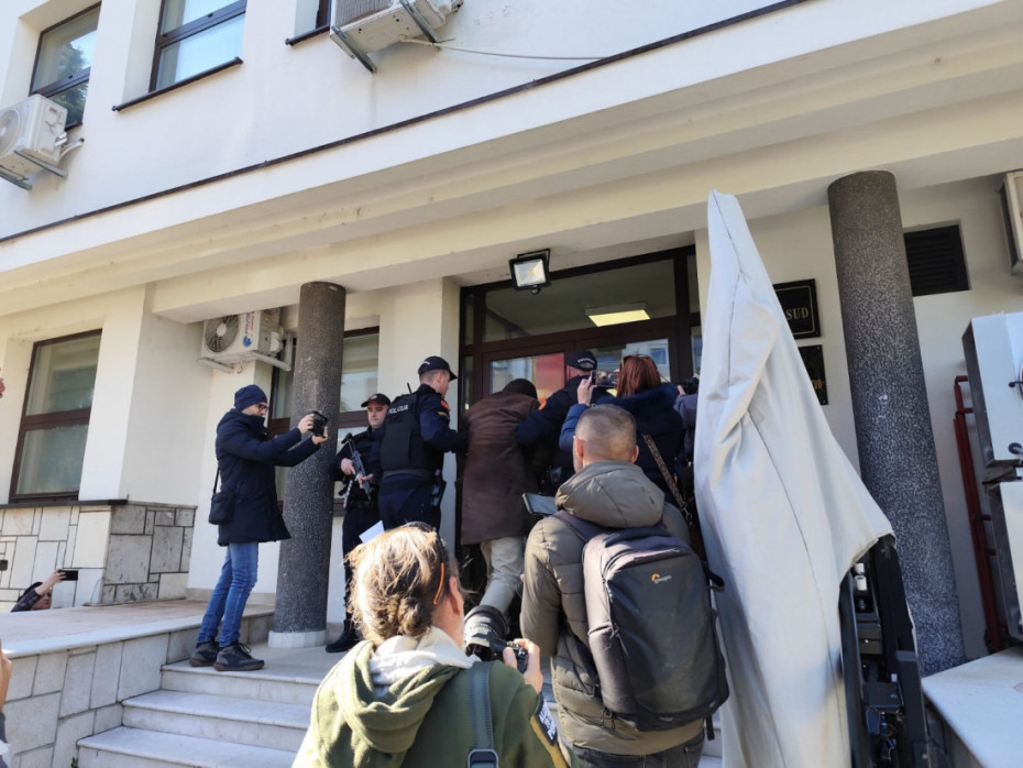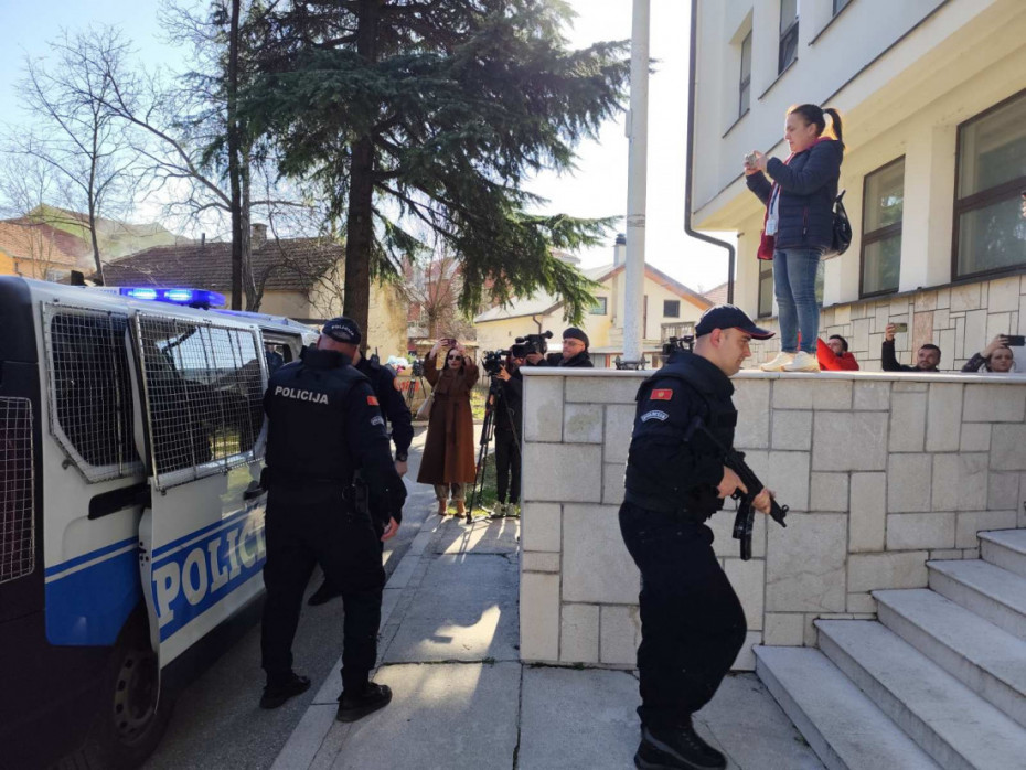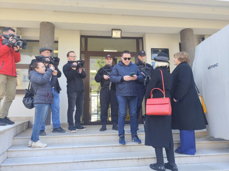 Đukanović je doveden na saslušanje u zgradu Osnovnog državnog tužilaštva u Nikšiću, a stigao je i njegov advokatski tim. Takođe je došla i njegova sestra.