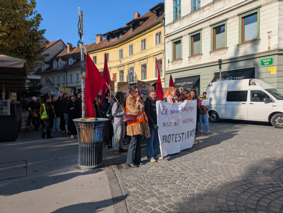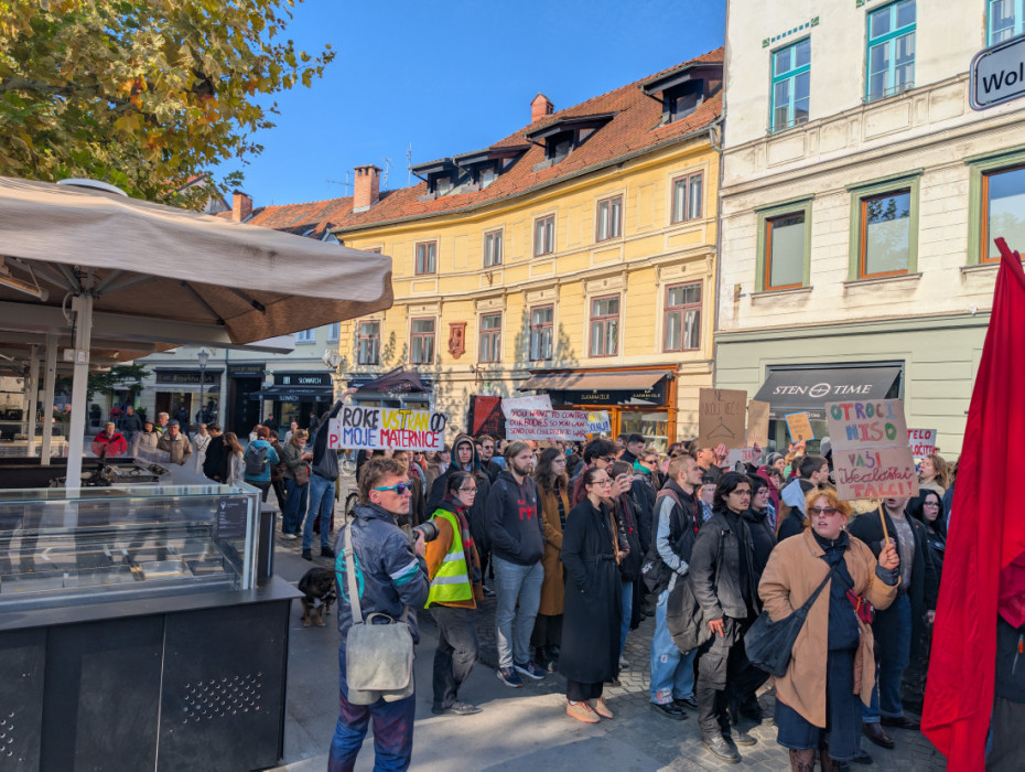 Protivnici prava na abortus, od kojih su mnogi držali balone i transparente "Izaberite život", "Svako je dostojan života" i "Abortus nije zdrav", okupili su se na Prešernovom trgu, a skupu je prisustvovao i pokretač kampanje, konzervativni aktivista Aleš Primc.