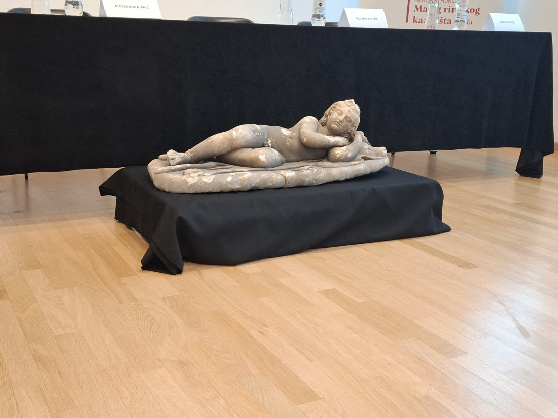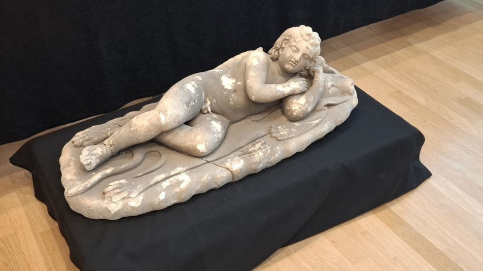 Skulptura, dugačka 98, široka 44 i visoka 30 centimetara, otkrivena je u dva dela, ali stručnjaci je opisuju kao primer savršenstva antičkog vajarstva. Predstavlja Kupidona koji leži na lavljoj koži, a pored njega se nalazi mali gušter, prenosi Hrvatska radio televizija.