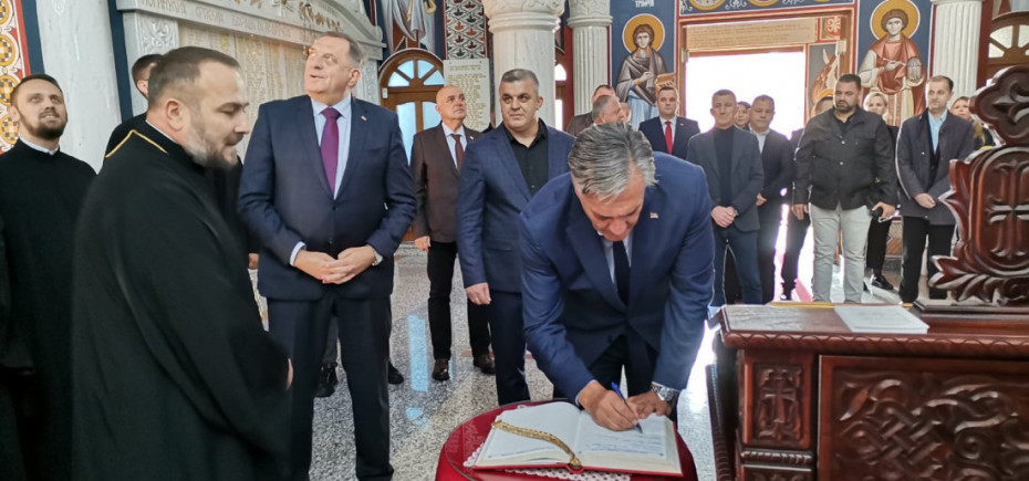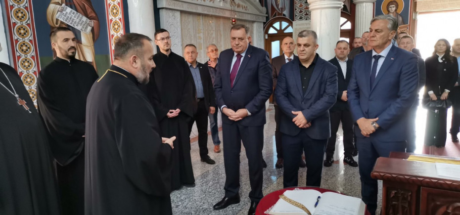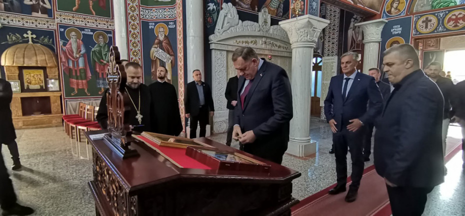 On je istakao da se danas u Spomen-hramu Presvete Trojice u Tesliću poklonio pred spomen-pločom sa imenima 550 srpskih boraca koji su život dali za Republiku Srpsku.
