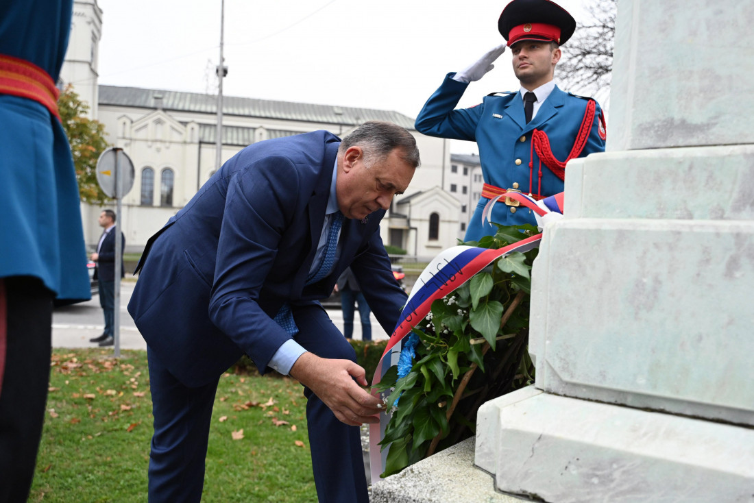 Dodik je venac položio u pratnji ministra za naučnotehnoški razvoj i visoko obrazovanje Republike Srpske Siniše Karana, premijera Srpske Save Minića i predsednika Skupštine Brčko distrikta Siniše Milića.