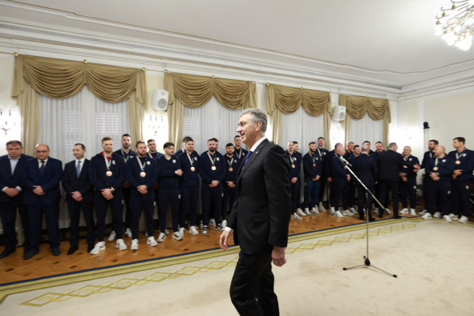 "Uvek donosite radost celoj naciji, stoga je prirodno da vam uzvratimo istom merom‘, izjavio je premijer Andrej Plenković rukometašima tokom službenog prijema u njegovom Kabinetu. Premijer, koji od 2024. vlada u koaliciji s desnim Domovinskim pokretom, prisustvovao je ovog leta probama Tompsona i objavio selfie, podseća AFP.