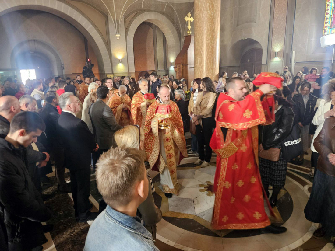 U Mostaru je vaskršnju liturgiju u Sabornom hramu Svete Trojice služio starešina hrama Duško Kojić, uz sasluženje đakona Miloša Janjića i prisustvo velikog broja vernika.