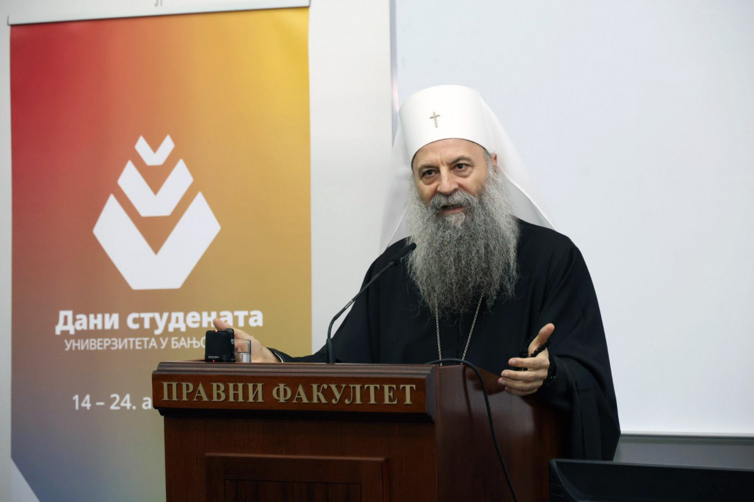 Patrijarh Srpske pravoslavne crkve Porfirije obratio se večeras studentima Pravnog fakulteta u Banjaluci, rekavši da je univerzitet "sadašnjost i budućnost naroda i zemlje".