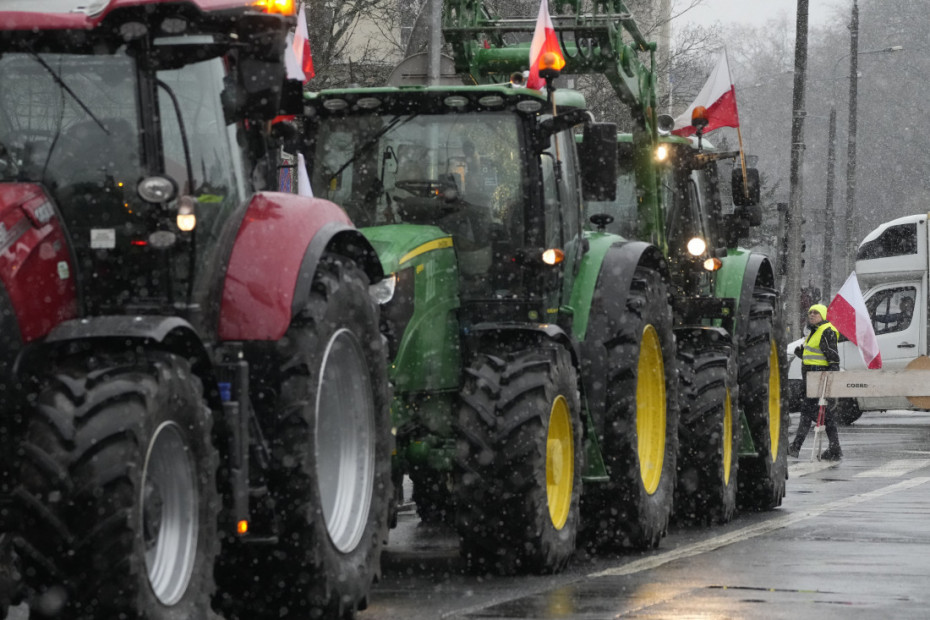 U Poljskoj, gde je uvoz jeftinog žita, mleka i drugih proizvoda iz Ukrajine izazvao naročit gnev, farmeri su vozili traktore širom zemlje kako bi usporili saobraćaj i blokirali glavne puteve, a na nekima su bili postavljeni natpisi "Politika EU uništava poljske farmere".