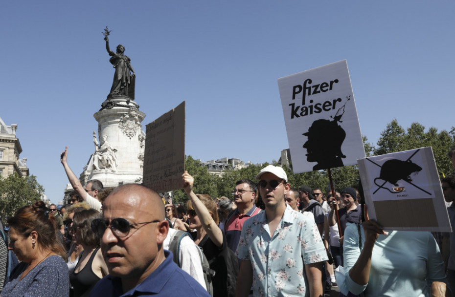 Oni su se okupili na ulicama Pariza, Marseja, Nice, Monpeljea i drugih gradova mašući transparentima sa natpisom "Propusnica = aparthejd" i uzvikujući "Sloboda, sloboda", preneo je Rojters.