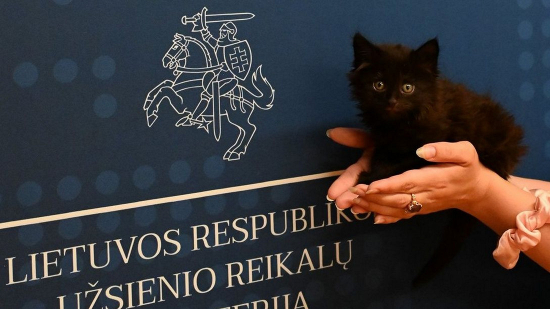 Crno mače koje je pronađeno u dvorištu Ministarstva spoljnih poslova Litvanije "regrutovano je" u Odeljenje za strateške komunikacije, objavilo je Ministarstvo na mreži X.