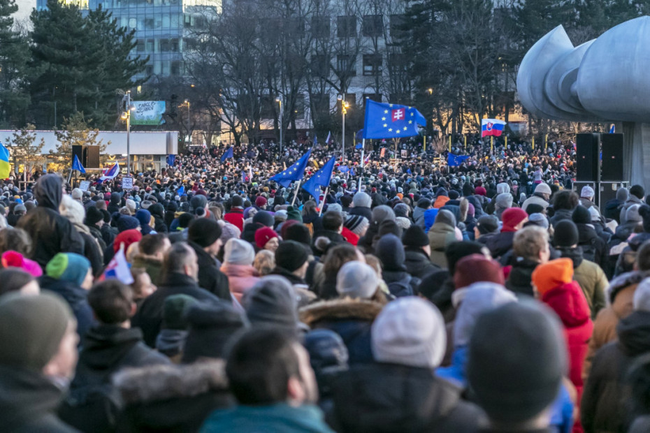 U Bratislavi se na Trgu slobode okupilo više od 10.000 ljudi, što je znatno manje nego na protestu pre dve nedelje, kada je došlo oko 45.000 ljudi, prenosi slovački portal Denik.