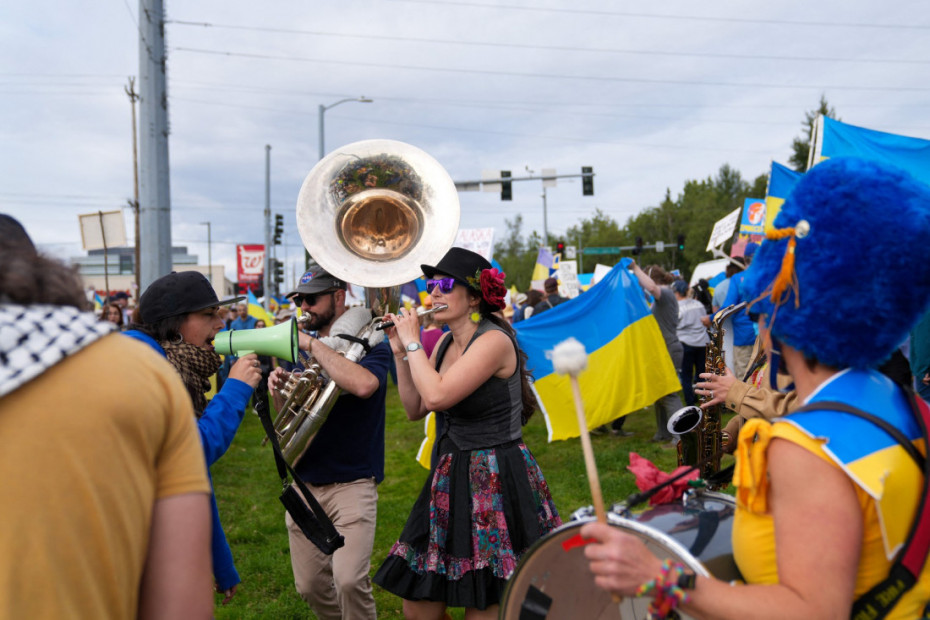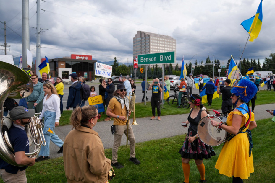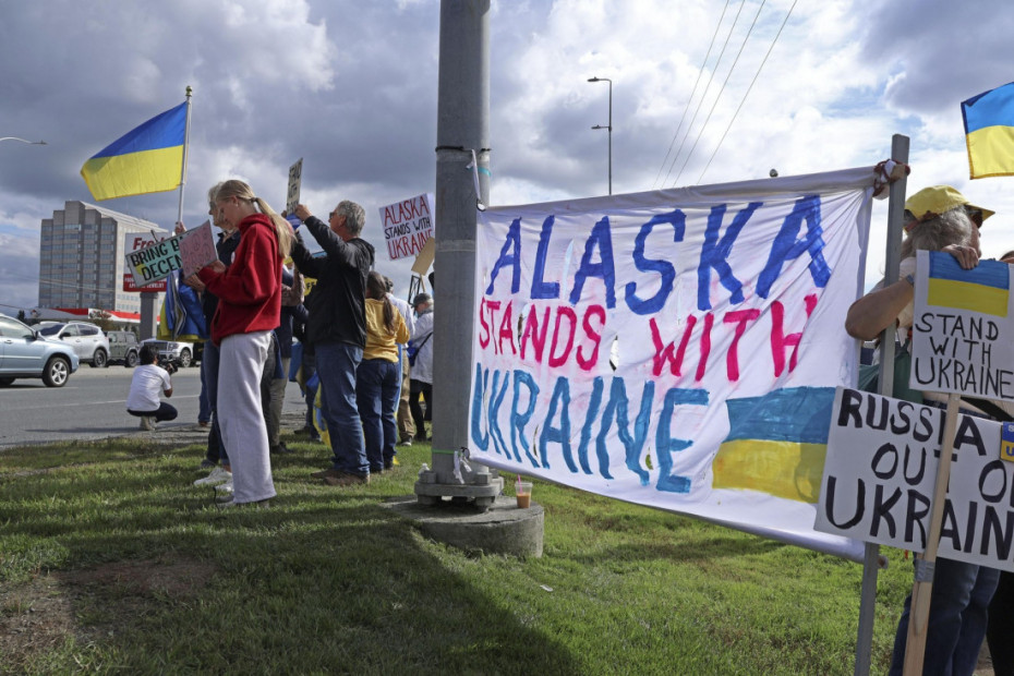 "Putin se neće zaustaviti na Ukrajini", pisalo je na plakatima, izražavajući zabrinutost stanovnika Aljaske da bi Putin mogao da pokuša da ponovo preuzme kontrolu nad Aljaskom, koju je 1867. godine Rusija prodala Sjedinjenim Državama.