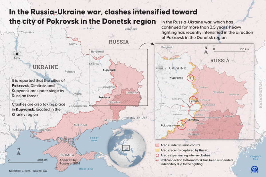 Predsednik Ukrajine Volodimir Zelenski izjavio je ranije ove nedelje da je Rusija u tom regionu koncentrisala oko 170.000 vojnika kako bi pojačala ofanzivu na Pokrovsk.