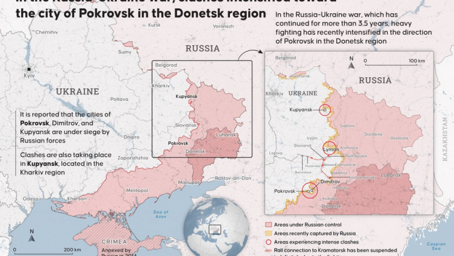 Borba za kontrolu nad Pokrovskom, strateškom tačkom na velikoj drumskoj i železničkoj arteriji u Donjeckoj oblasti, traje više od godinu dana, a grad je važan u okviru pokušaja ruskog lidera Vladimira Putina i nastojanjima da preuzme kontrolu nad celim industrijskim istokom Ukrajine.