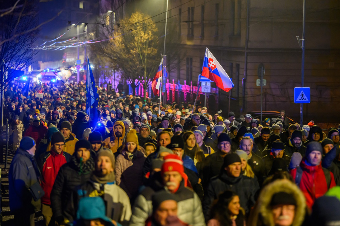 Više hiljada ljudi protestovalo je danas u Bratislavi protiv sistematskog urušavanja pravne države i slabljenja pravosuđa u Slovačkoj u reakciji na nedavno usvojene izmene Krivičnog zakonika