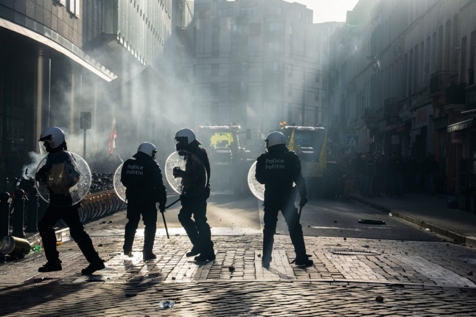 Policija je u više navrata intervenisala vodenim topovima kako bi sprečila traktore da probiju policijske blokade, kao i suzavcem da bi onemogućila ulazak demonstranata u bezbednosnu zonu.