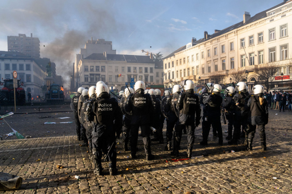 Najmanje jedna osoba je teže povređena, a više ih je uhapšeno nakon sukoba s policijom koja je tokom protesta poljoprivrednika u centru Brisela koristila suzavac i vodene topove. Prema navodima lokalnih vlasti i medija, demonstranti su bacali krompir, cveklu, šećernu repu, kamenje i petarde na policajce koji su obezbeđivali zgradu Evropskog parlamenta.