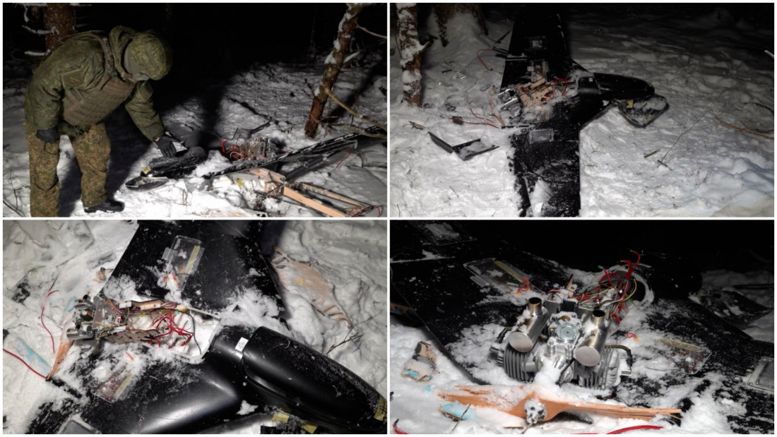 Na fotografijama koje je rusko Ministarstvo odbrane dostavilo medijima vidi se oboreni dron na nepoznatoj lokaciji, a iz Moskve navode da je reč o jednoj od letelica korišćenih u, kako tvrde, pokušaju napada koji se dogodio tokom ove sedmice.