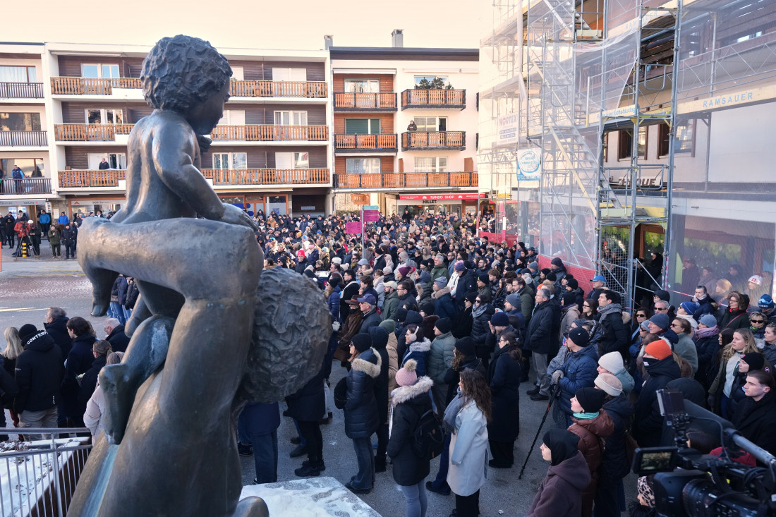 Improvizovani spomenik posvećen žrtvama požara u Kran-Montani, švajcarskom skijalištu u kojem je u novogodišnjoj noći poginulo više od 40 ljudi, zapalio se rano jutros, saopštila je lokalna policija.