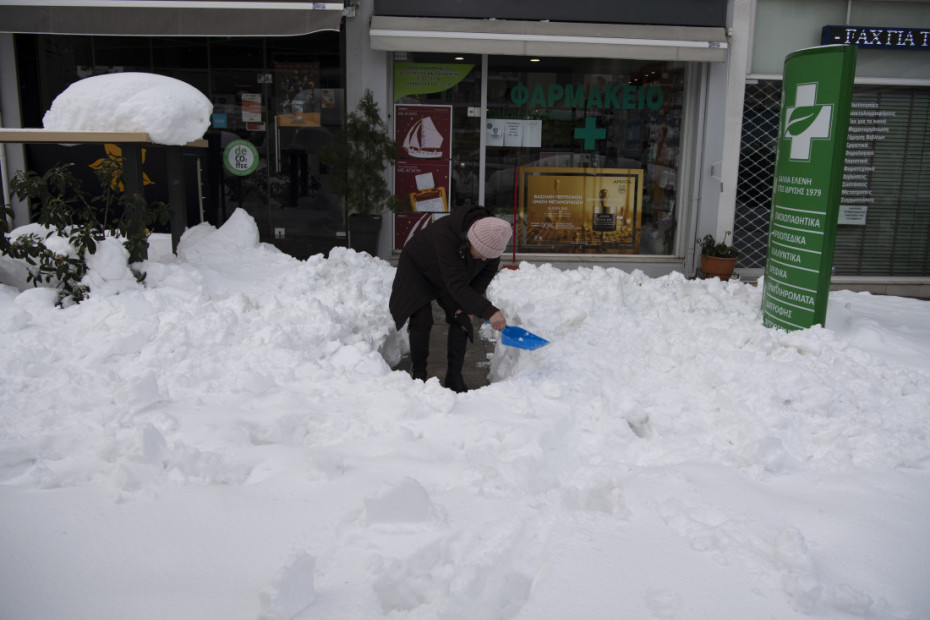Jake snežne padavine danas su uglavnom prestale, ali su mnoge ulice u Atini ostale blokirane oborenim drvećem, dok je nekoliko kvartova na severu grada ostalo bez struje.