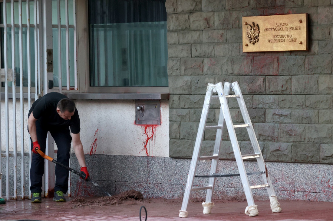 Bačena crvena boja na ambasadu Poljske u Moskvi, zaposleni pokušali da uklone boju