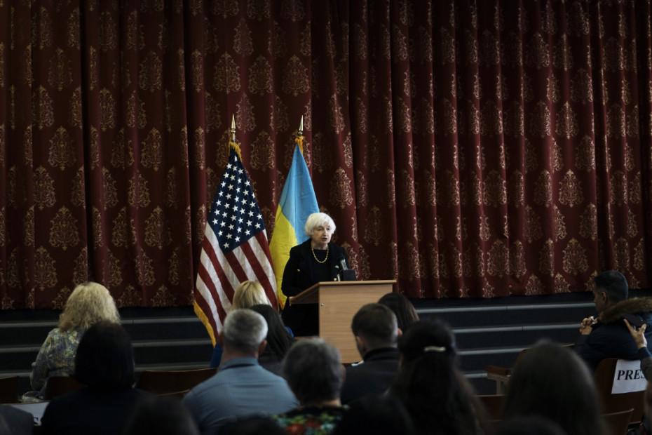 Američka ministarka finansija Dženet Jelen u iznenadnoj poseti Kijevu potvrdila je danas podršku SAD Ukrajini u borbi protiv ruske invazije i najavila još veću ekonomsku pomoć Vašingtona. Jelen se sastala sa predsednikom Ukrajine Volodimirom Zelenskim i najvišim zvaničnicima te zemlje nekoliko dana nakon godišnjice rata i ponovila uveravanja predsednika Džozefa Bajdena, koji je pre nedelju dana posetio Kijev, da će “Amerika biti uz Ukrajinu dokle god bude potrebno”, preneo je Rojters. Ukrajinski premijer Denis Šmihal izjavio je da je sa američkom ministarkom razgovarao o daljim sankcijama Rusiji koje imaju za cilj slabljenje njene vojske i ekonomije, kao i o „konfiskaciji zamrznute ruske imovine i njeno preusmeravanje u oporavak Ukrajine".
