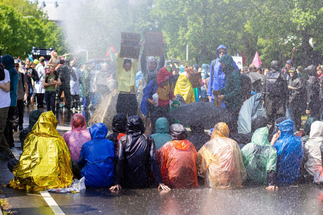 Policija je upotrebila vodene topove kako bi pokušala da rastera masu, ali mnogi demonstranti su došli spremni - u kabanicama i kupaćim kostimima.
