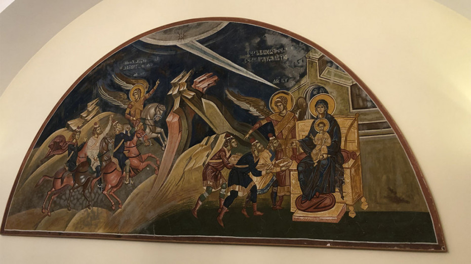 Na fresci Hrista Pantokratora koja oslikava unutrašnji deo kupole na liku Hrista, tačno na čelu, nalazi prostrelna "rana" naneta pucnjem iz puške.
