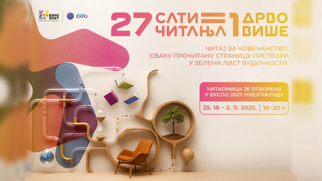 "Svaka pročitana knjiga doprineće sadnji jednog drveta, a svaki sat proveden uz knjigu beleži se kao lični doprinos zajedničkom cilju – stvaranju Expo parka koji će ostati trajno nasleđe specijalizovane izložbe. Za svakih 27 sati čitanja biće zasađeno jedno drvo – simbolično podsećanje na godinu u kojoj će Srbija ugostiti svet. Tako vreme provedeno uz knjigu postaje nova valuta društvenog dobra, pretvarajući čitanje u čin koji obogaćuje i čoveka i prirodu", stoji u saopštenju.