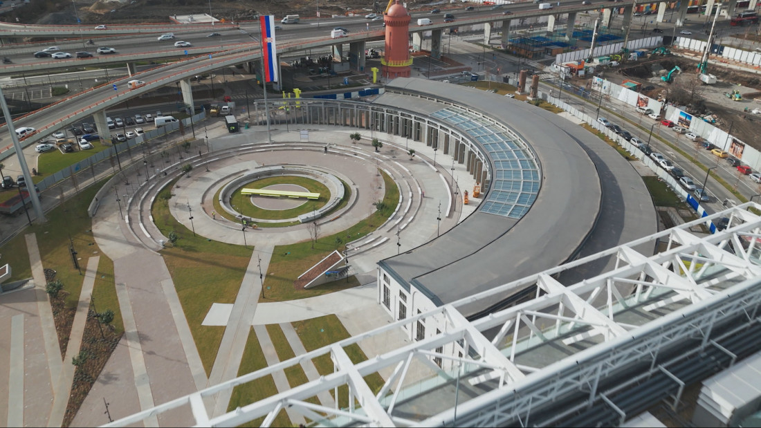"Ukoliko šetate spoljnim prostorom, videćete gde je nekada prolazila pruga. U unutrašnjosti sve sija saobraćajnom žutom bojom. Takođe možete primetiti gabione ispunjene originalnim kamenom sa pruga po celoj Srbiji, koji su ručno punjeni i na simbolički način predstavljaju pruge", ističe Vanja Marinović.