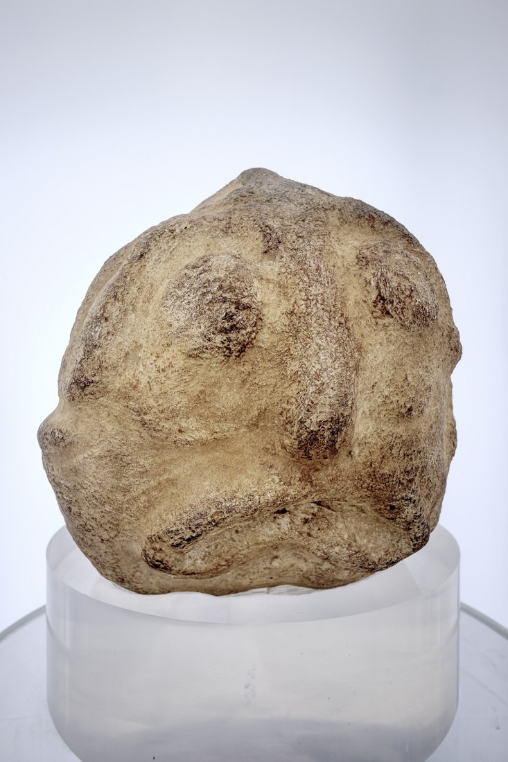 Na jajoliko izduženom oblutku, plastično je prikazano riboliko biće, u dubokom reljefu na jednoj strani oblutka formirano je lice skulpture, a reljef je izveden iskucavanjem.