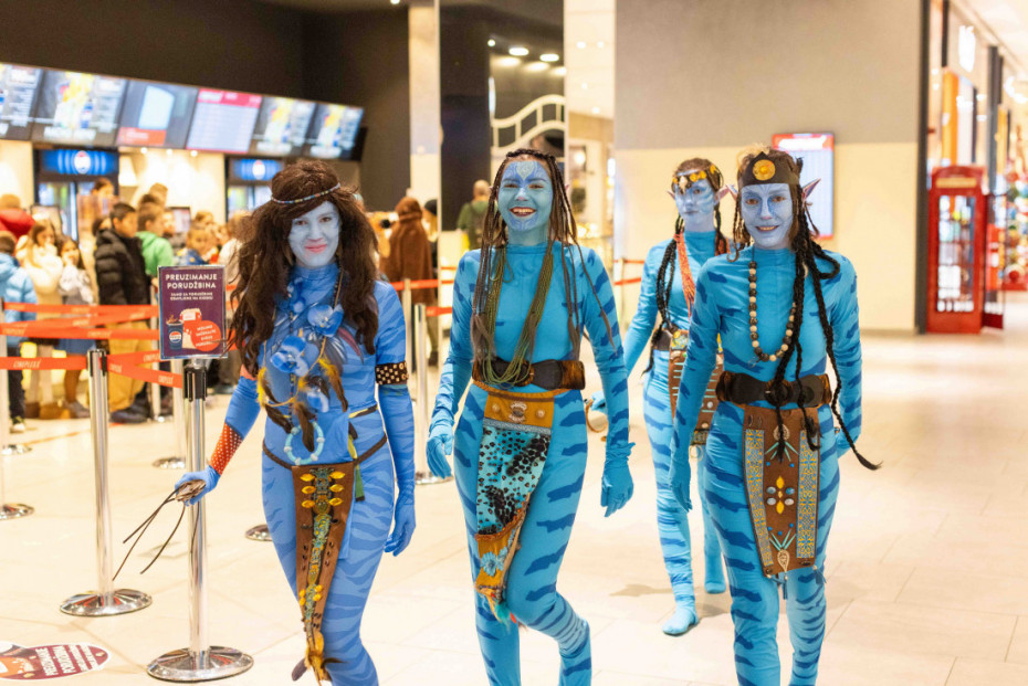 Najatraktivnije bilo je na sinoćnoj svečanoj projekciji održanoj u bioskopu Cineplexx u sali IMAX sa brojnim fanovima kostimiranim u poznate Avatar likove, kao i uz muziku iz filma koju su pre početka izvele violinistkinja i čelistkinja Jovana i Dunja, studentkinje sa Fakulteta muzičke umetnosti.