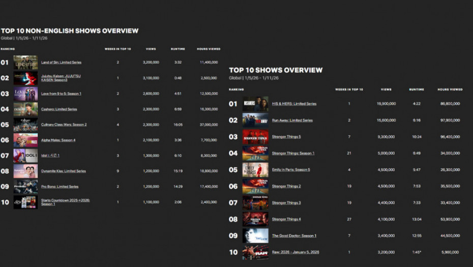 Sezona će gotovo sigurno nastaviti da napreduje na listi i deluje vrlo verovatno da će bar izjednačiti rezultat četvrte sezone iz 2022. godine, koja se i dalje nalazi na 3. mestu sa 140,7 miliona pregleda, piše Variety.