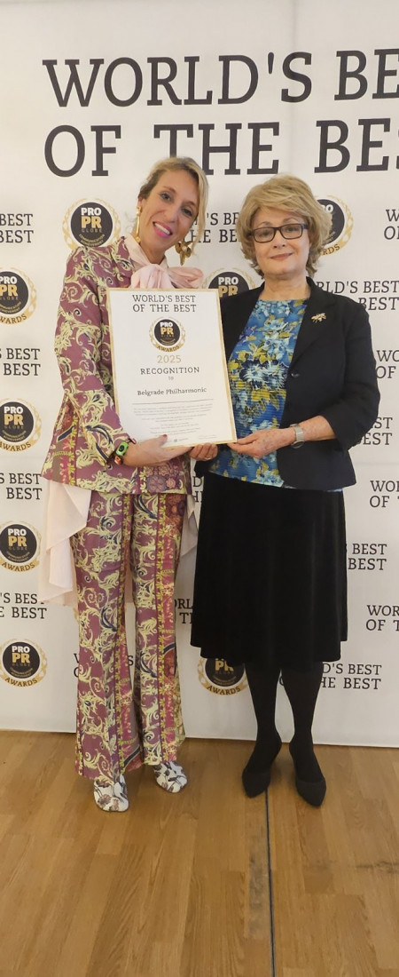 Beogradska filharmonija je nagrađena za izuzetna dostignuća u oblasti komunikacija sa javnošću na PRO PR Roma Forumu održanom 27. i 28. januara u Rimu, a priznanje je uručeno Jeleni Milašinović, dugogodišnjoj PR menadžerki ove institucije.