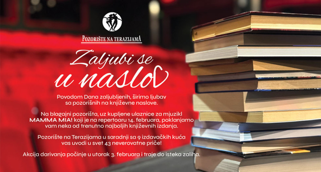 Pozorište na Terazijama i ove godine u susret Danu zaljubljenih predstavlja kampanju "Zaljubi se u naslov" koja spaja ljubav prema književnosti i pozorištu.