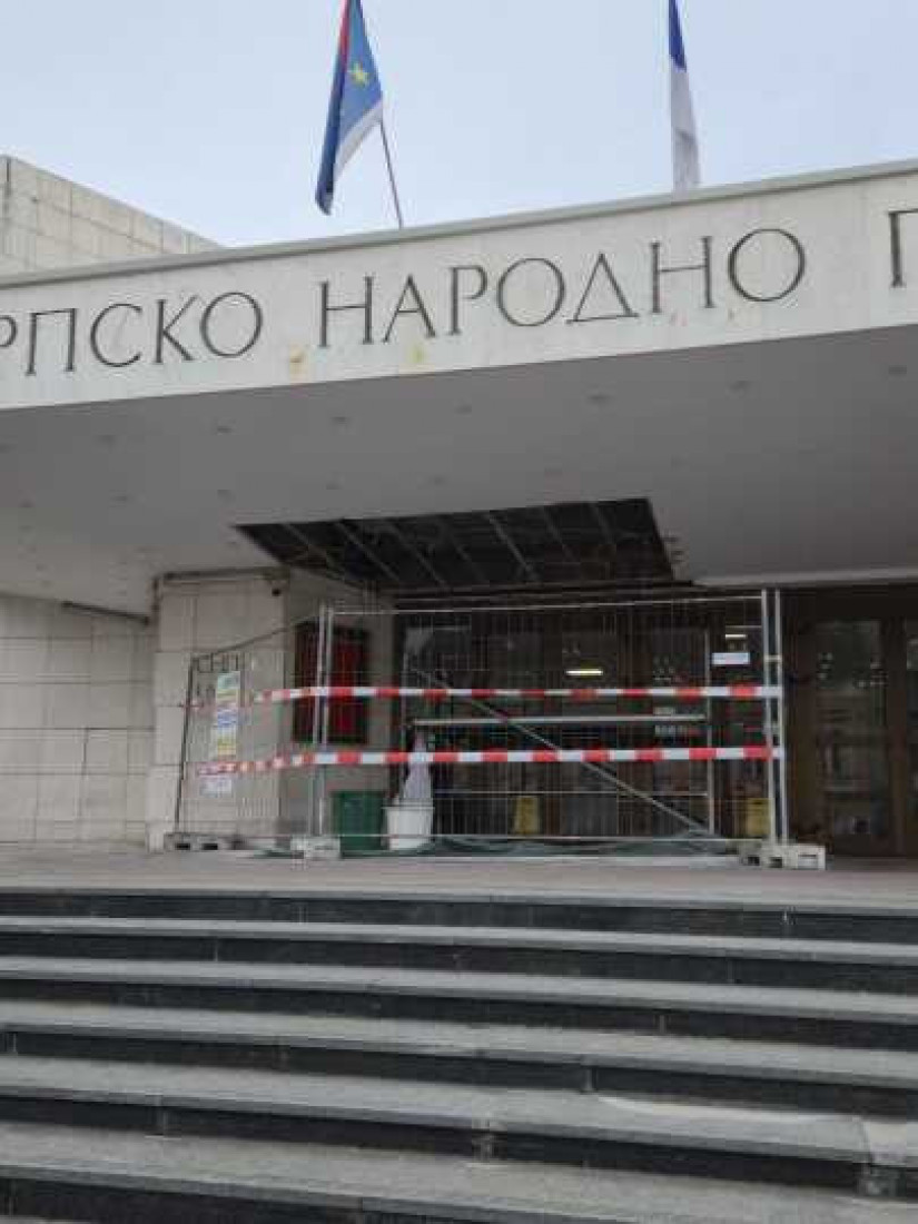 Prema saopštenju SNP-a, u toku su radovi na popravci drenažnog sistema u levom delu nadstrešnice ispred glavnog ulaza, koji su počeli 24. februara, i biće gotovi do kraja ove sedmice.