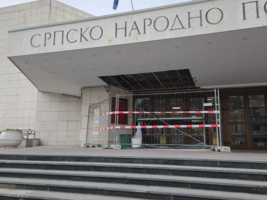"Usled začepljenja drenažnog sistema, došlo je do prokišnjavanja u jednom delu nadstrešnice. U cilju otklanjanja uočenih nedostataka na drenažnom sistemu, koji izazaivaju prokišnjavanje, u okviru radova uklonjene su ploče sa donjeg dela nadstrešnice, koje će biti vraćene po završetku radova", navode iz Srpskog narodnog pozorišta.